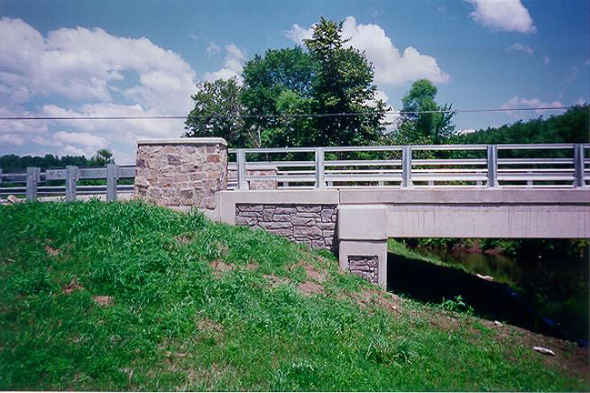 Town of Salisbury – WMC has inspected, designed and overseen construction of multiplt bridges for the Town of Salisbury. Salmon Kill Road Bridge, is an example of a pre-stressed concrete superstructure on conventional concrete abutments but displays detail of the stone approach wall where WMC utilized local construction materials to enhance the visual aesthetics.